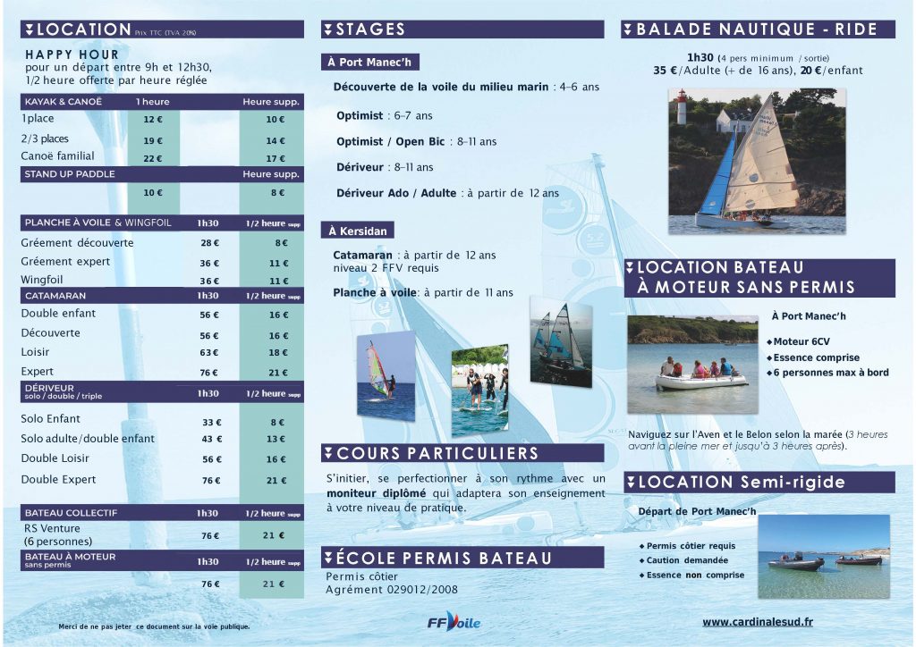 Location semi-rigide au départ du port de Port Manech :